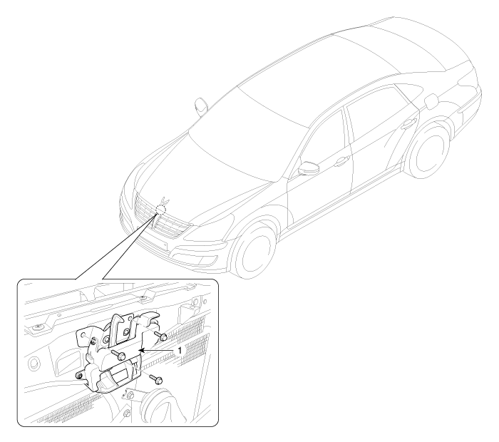Hyundai Equus: Hood Latch Components and Components Location - Hood - Body (Interior and Exterior) - Hyundai Equus VI 2009-2025 Service ManualHyundai Equus: Hood Latch Components and Components Location