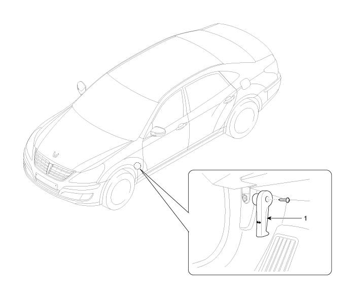 Hyundai Equus: Hood Latch Release Handle Components and Components Location - Hood - Body (Interior and Exterior) - Hyundai Equus VI 2009-2025 Service ManualHyundai Equus: Hood Latch Release Handle Components and Components Location