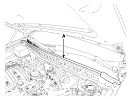 Remove the glue on end of both sides before removing the hood weatherstrip (A).