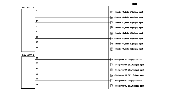 | 57 | Injector (Cylinder #8) signal input | Engine Control Module (ECM) |