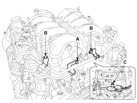Disconnect the ETC module connector (A), PCSV connector (B) and the PCV hose (C).