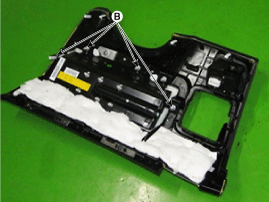 Remove the knee airbag (C) after loosening the srcrews (A) and nuts (B).
