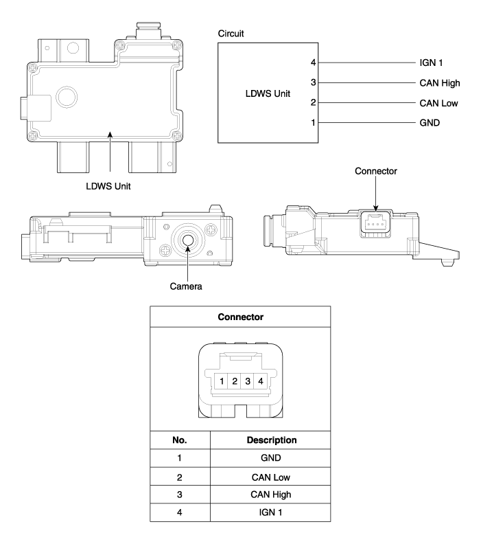 Hyundai Equus: Lane Departure Warning System (LDWS) Unit Components and Components Location