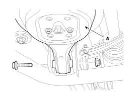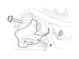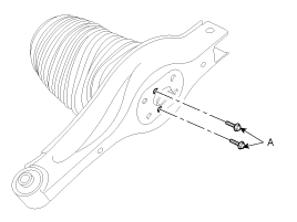 Disconnect the lateral arm (A) from the air strut assembly bracket by loosening the bolt & nut.