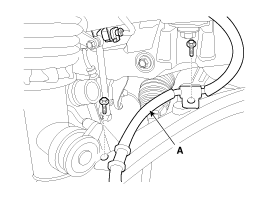 Disconnect the brake hose (A) from the tension arm by loosening the bolt.