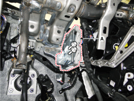 After loosening the mounting screws, remove the crash pad lower panel (A).