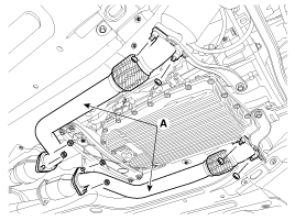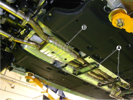 Remove the center muffler (B) after removing the tunnel stay (A).