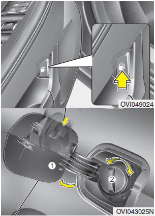 2. Push the fuel filler lid opener button located on the driver’s door. Then the