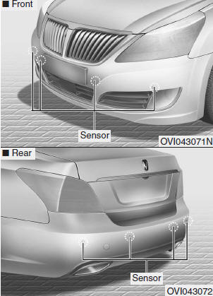 The parking assist system assists the driver during movement of the vehicle by chiming if any object is sensed within the distance of 39 in (100 cm) in front or 47 in (120 cm) behind the vehicle.