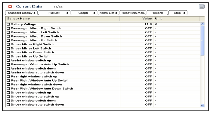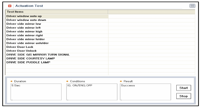 To check the input value of door lock switch in force mode, select option "ACTUATION TEST".