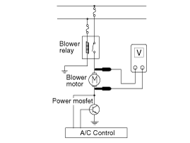 Manually operate the control switch and measure the voltage of the blower motor. |