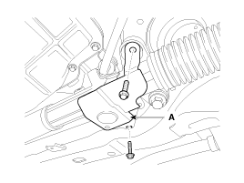 Remove the steering gear box bracket (A) by loosening the bolts.