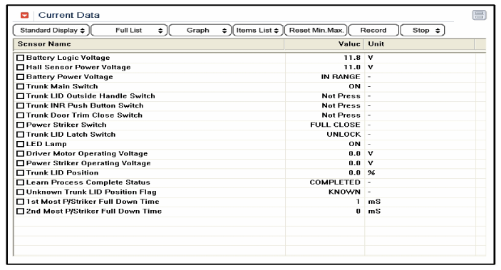 Connect the negative (-) battery terminal and check the power trunk module correctly. |