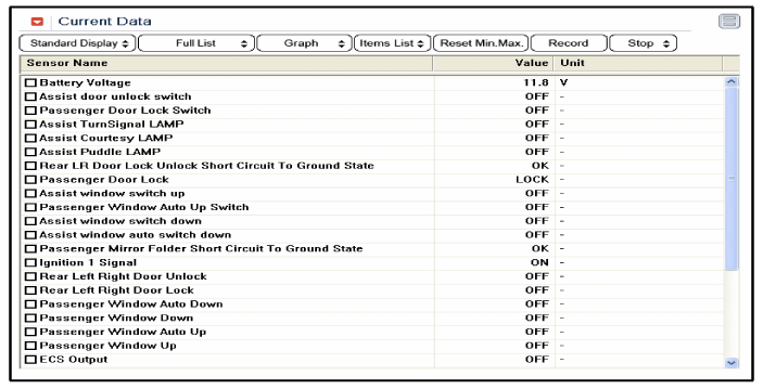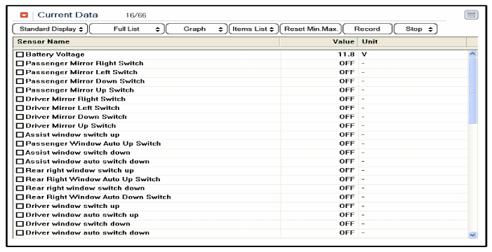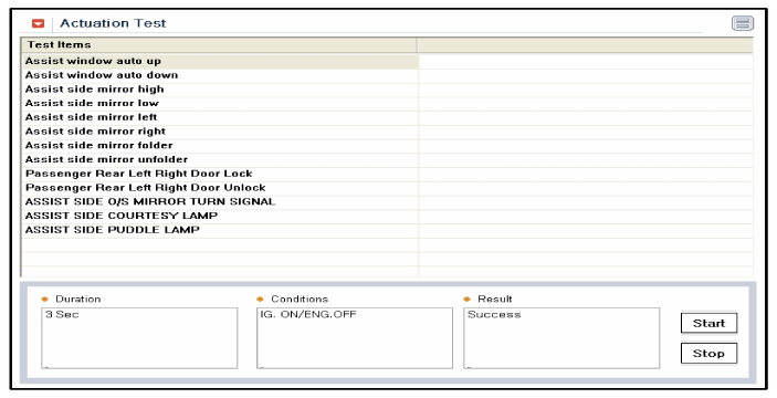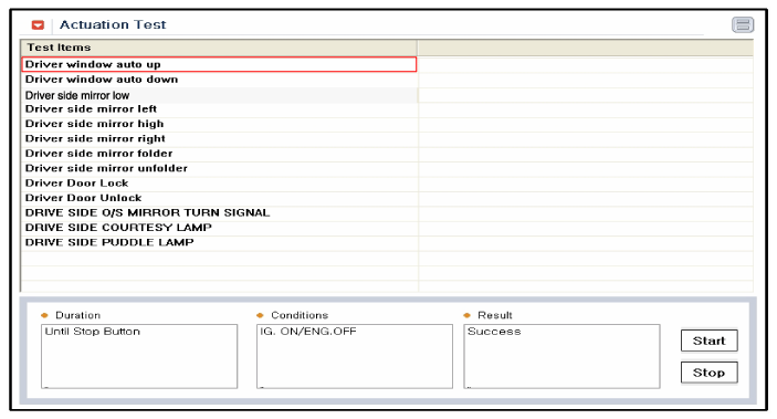To check the input value of power window switch in force mode, select option "ACTUATION TEST".