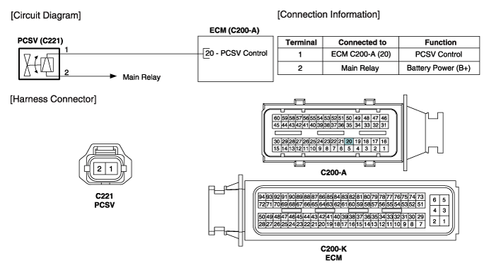 Hyundai Equus: Purge Control Solenoid Valve (PCSV) Schematic Diagrams
