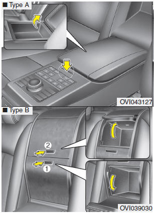 To open the console storage, push the open button. After using the console storage, make sure to close it.