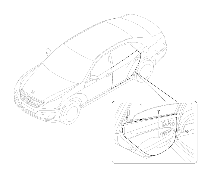 Hyundai Equus: Rear Door Trim Components and Components Location - Rear Door - Body (Interior and Exterior) - Hyundai Equus VI 2009-2025 Service ManualHyundai Equus: Rear Door Trim Components and Components Location