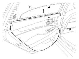 Loosen the door trim (B) mounting screws, Release the clips that hold the door trim.