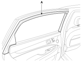 Using a screwdriver or remover, remove the rear door pull handle cap (A).