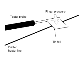 prevent damaging the heater line. Apply finger pressure on the tin foil,