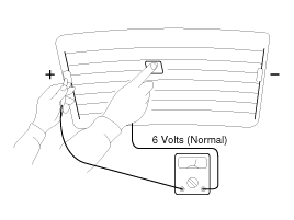 of approximately 6V is indicated by the voltmeter, the heater line of