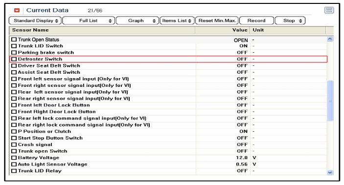 To check the input value of rear window defogger switch in force mode, select option "ACTUATION TEST".