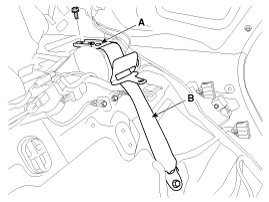After loosening the retractor (A) mounting bolt, remove the rear seat belt (B).