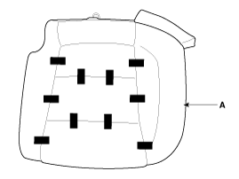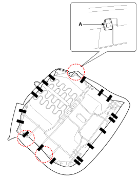 After removing the hog-ring clips on the rear of seat cushion cover and remove the rear seat cushion cover (A).
