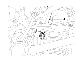 Disconnect the rear shock absorber (A) from the rear axle by loosening the bolt.