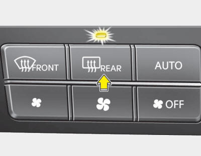 To activate the rear window defroster, press the rear window defroster button located in the center facia switch panel. The indicator on the rear window defroster button illuminates when the defroster is ON.