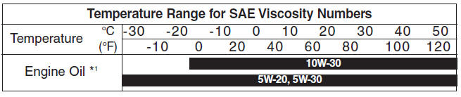 When choosing an oil, consider the range of temperature your vehicle will be operated in before the next oil change. Proceed to select the recommended oil viscosity from the chart.