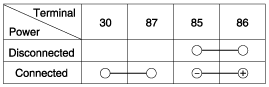 There should be no continuity between the No.87 and No.30 terminals when power is disconnected.