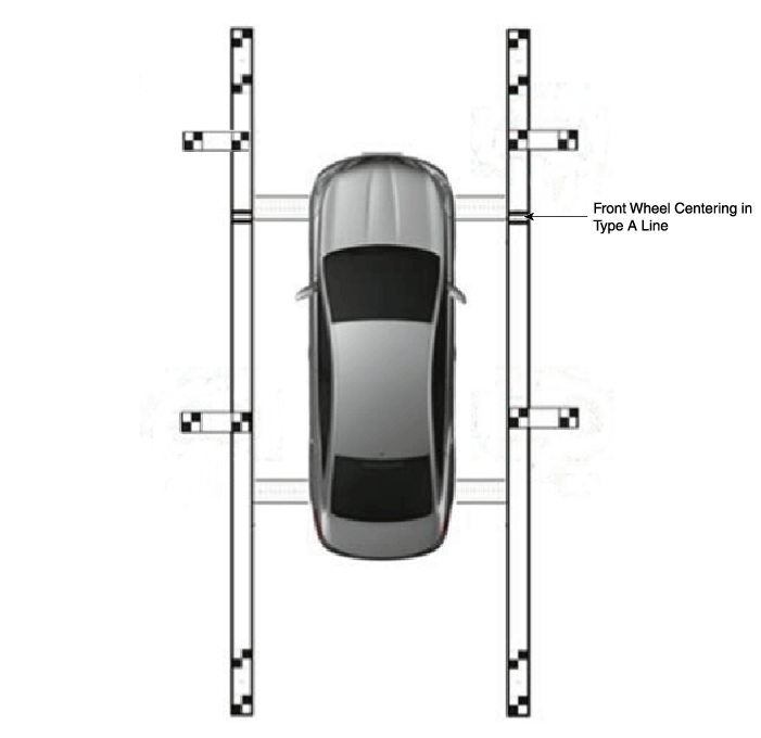 The front wheel of the vehicle must be positioned with the axis alignment position |