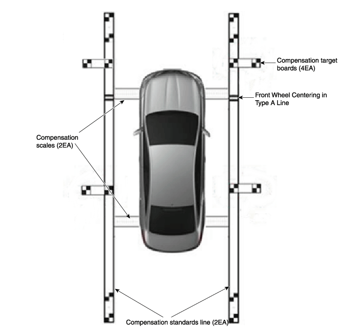 When centering the wheels on the compensation standards line board, the A-type and B-type must be centered separately.