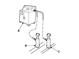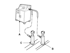 service port (C) and the low-pressure service port (B) as shown,