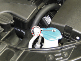 service port (C) as shown, following the equipment manufacturer's
