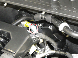 service port (B) as shown, following the equipment manufacturer's