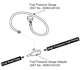 Inspect fuel leakage on connections among the fuel feed tube, the high pressure fuel pump, and the SST components with IG ON. |