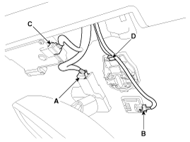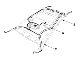 Remove roof trim wiring harness (A) from the roof trim (B).
