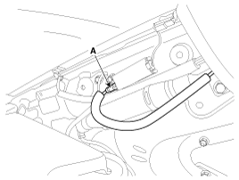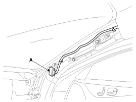 Disconnect the connectors (A) and the mounting clips in the rear pillar.
