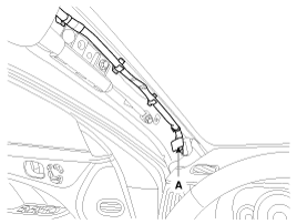 Disconnect the roof trim main connectors (A) and the mounting clips in the front pillar.