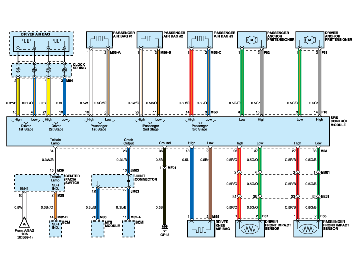 | 3 | Passenger Air Bag (3rd Stage - Low) | 3 | Driver Anchor Pretensioner (Low) |