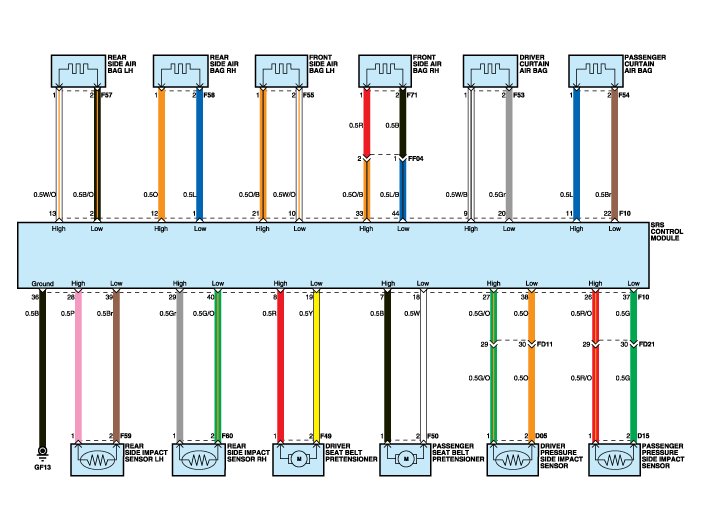 | 27 | Passenger Front Impact Sensor (High) | 27 | Driver Pressure Side Impact Sensor (High) |
