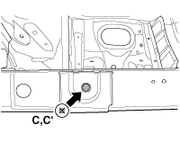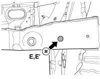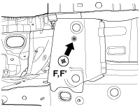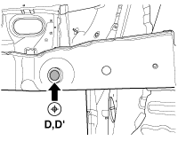 Front body A Roof panel front cornerFront pillar outer cornerHood hinge mounting hole (O13)Shockabsorber mounting hole (O24)Front end module mounting hole (O9)Cowl top cover mounting hole (O7) F ...