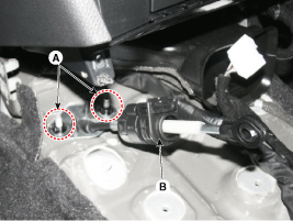 Remove the shift cable assembly (B) by removing the nuts (A).