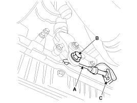 Remove the shift lever assembly (A) by removing the bolts.