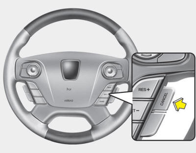 - Pull the lever (to CANCEL) located on the steering wheel.