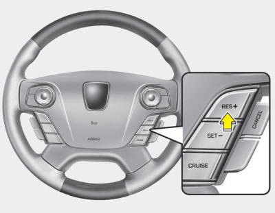 Always check the road conditions when pressing the RES+ switch to resume speed.