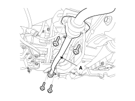 Disconnect the stabilizer bar (A) from the front sub frame by loosening the bolt.