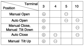 Ground the terminals as below table, and check that the sunroof unit operates as below table.